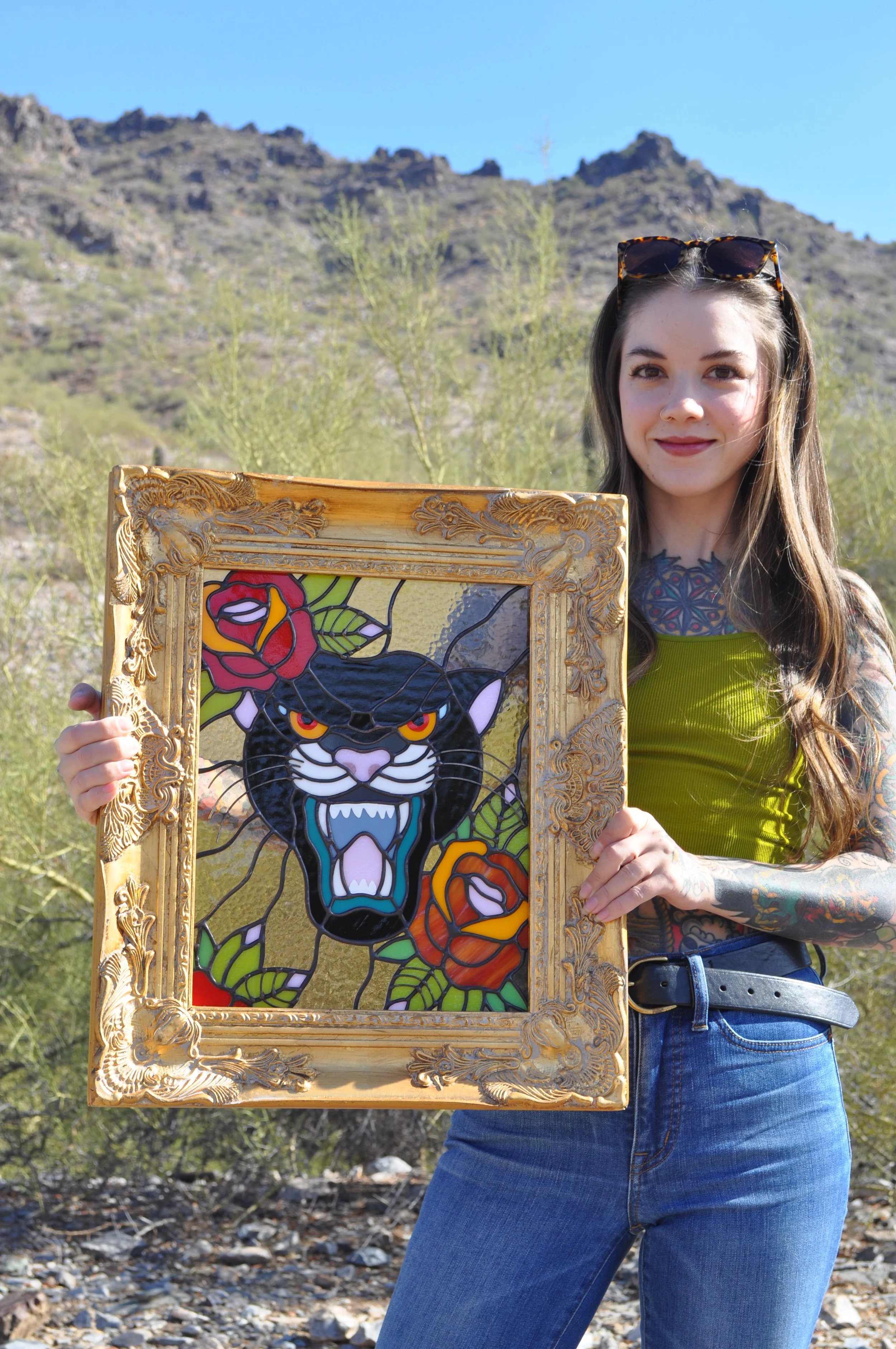 Stained glass is traditionally made with lead, and although the amount used comes with very minimal risk, it’s a good idea to wash your hands after handling your piece.