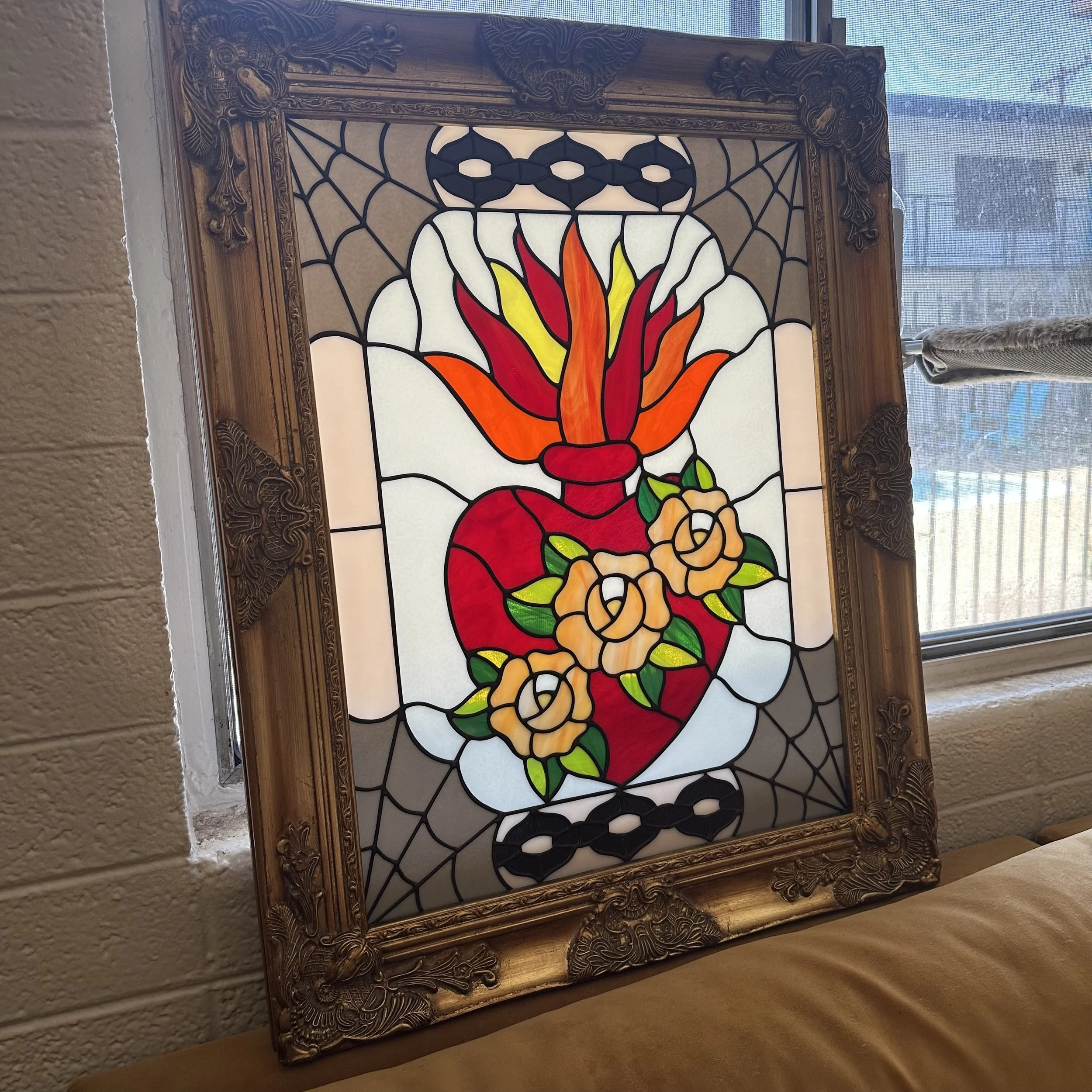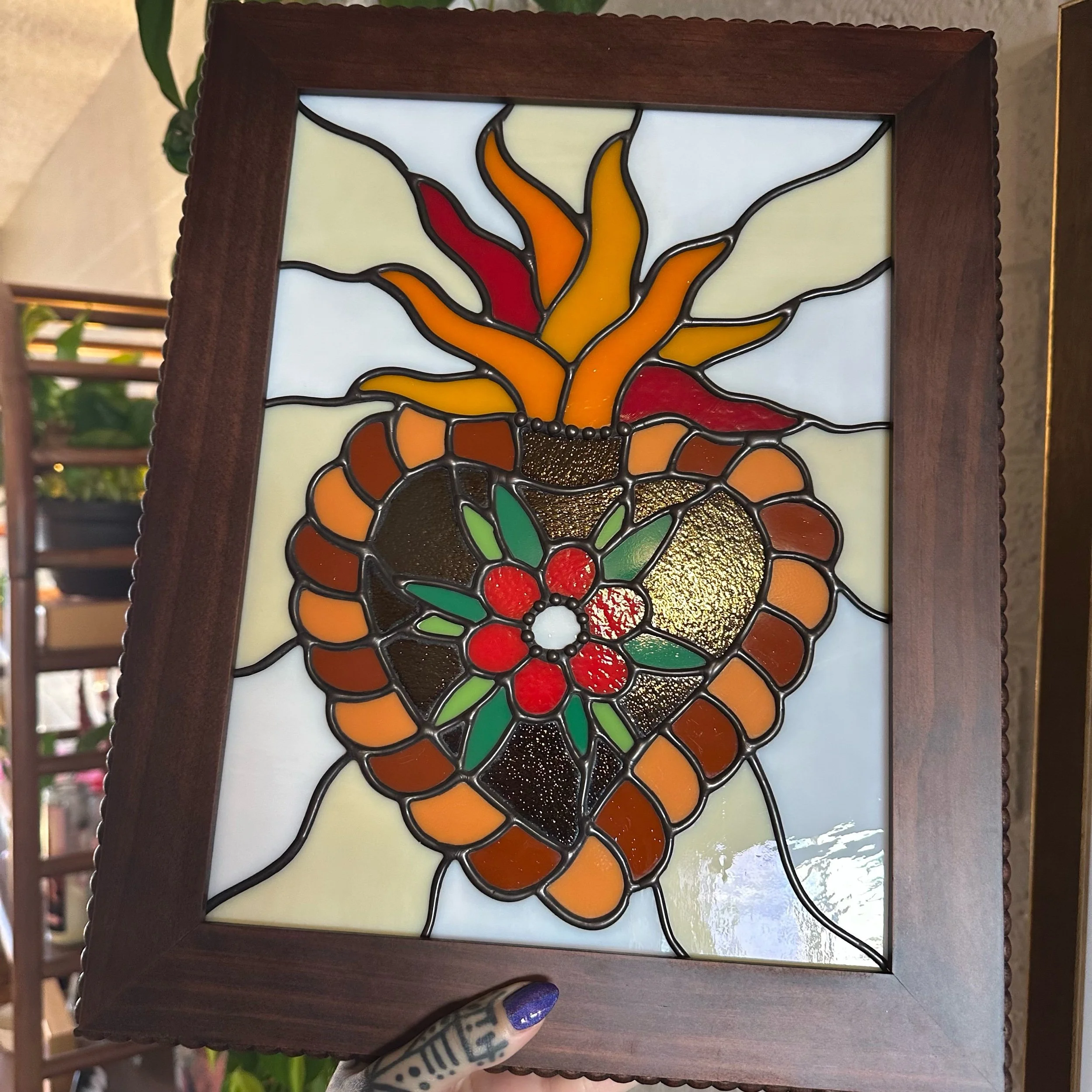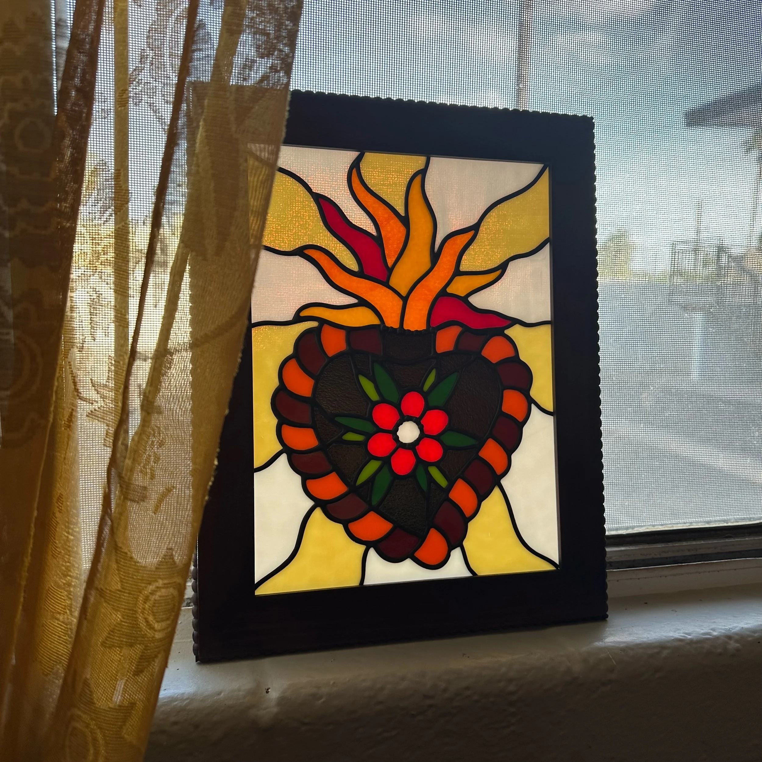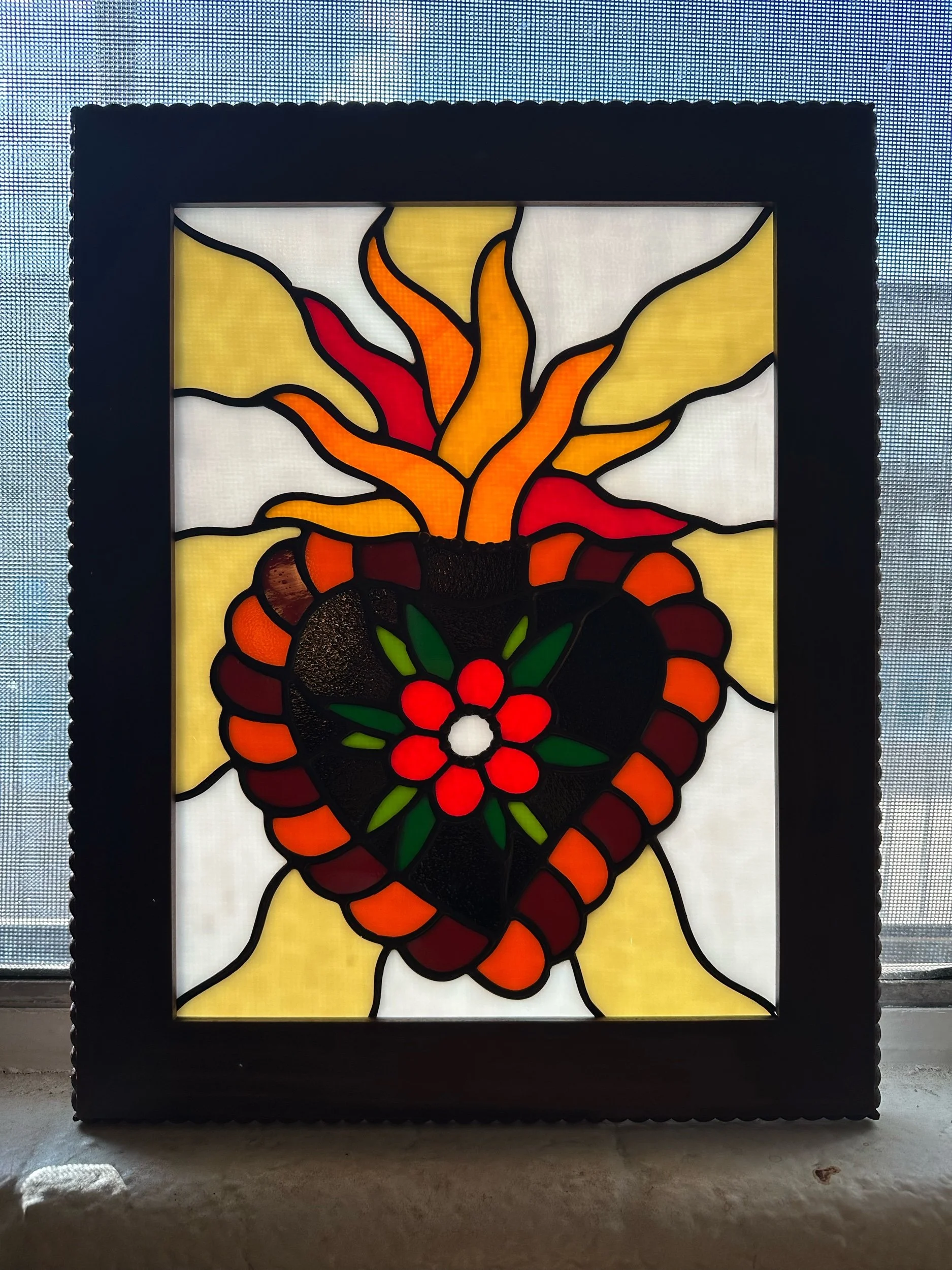 Categories: All Stained Glass Fused Glass Made-to-Order Pet Portraits All | Stained Glass | Fused Glass | Made-to-Order | Pet Portraits | Scalloped Sacred Heart $475.00 Geo Suncatcher- Red/Pink $85.00 Mini Fly Ornaments $54.00 Sold out Made-to-Order Eye Lamp Sale Price: $820.00 Original Price: $1,000.00 Sale Framed Sacred Heart Sale Price: $3,360.00 Original Price: $4,200.00 Sale