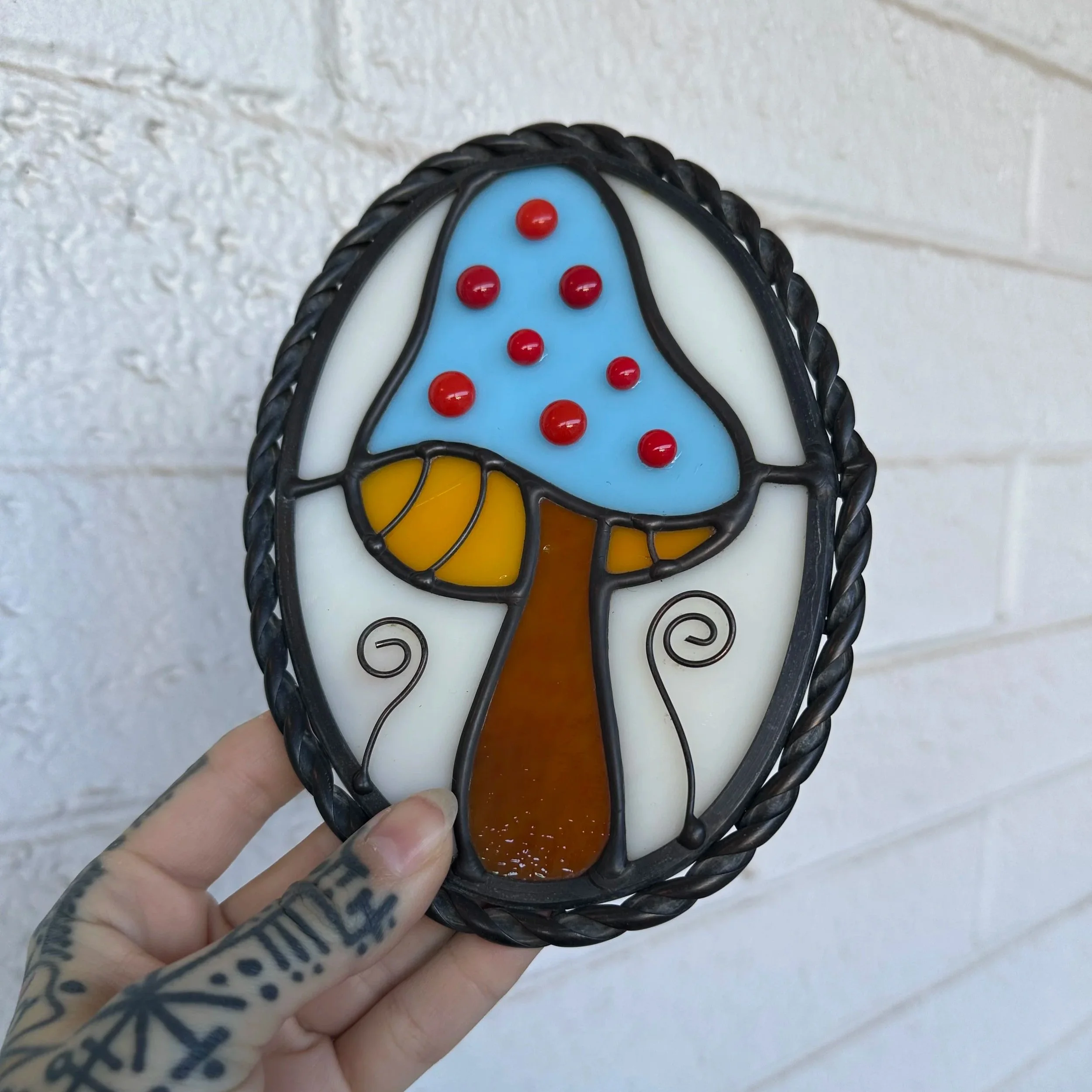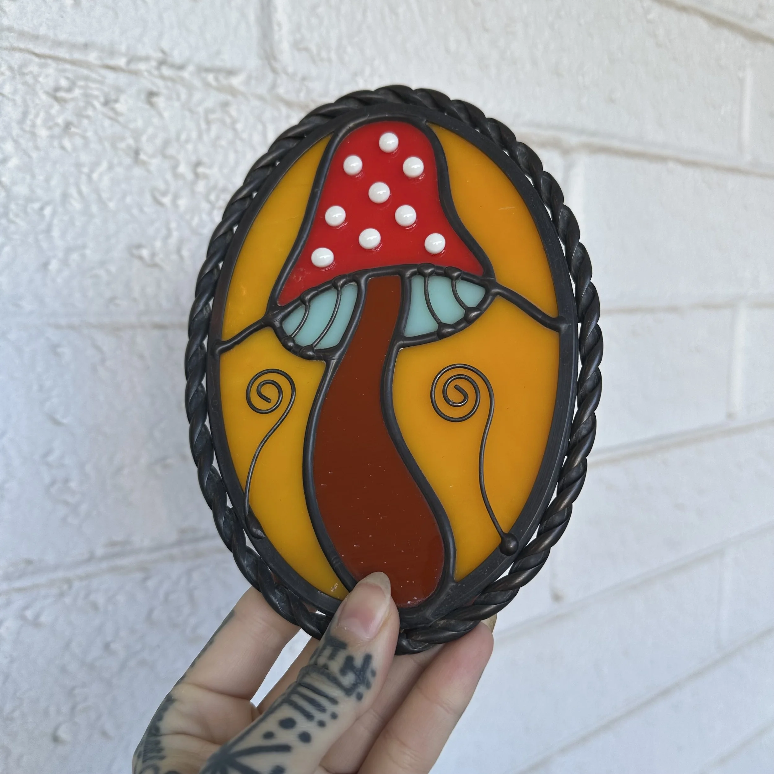 Stained glass cactus with decorative solder detail and twisted came border. Will come ready to hang with attached suede cord. Approximately 4.75” x 6.75”.